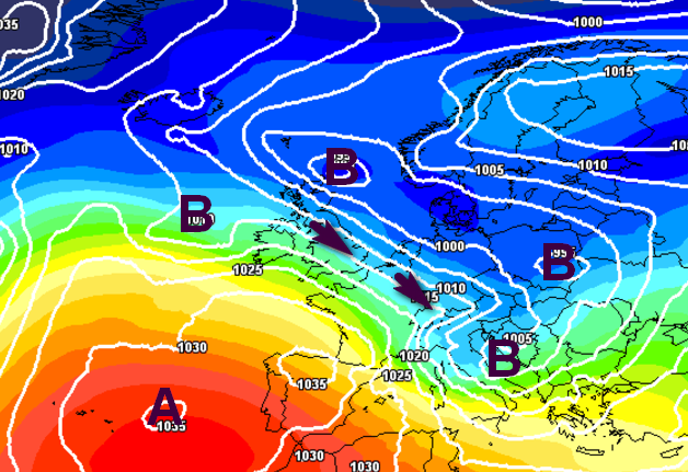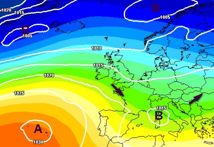 L’alta pressione rimarrebbe di quinta sulla Penisola Iberica, favorendo una massiccia discesa di correnti perturbate dal nord Europa con obiettivo il Mediterraneo centrale e dunque l’Italia.