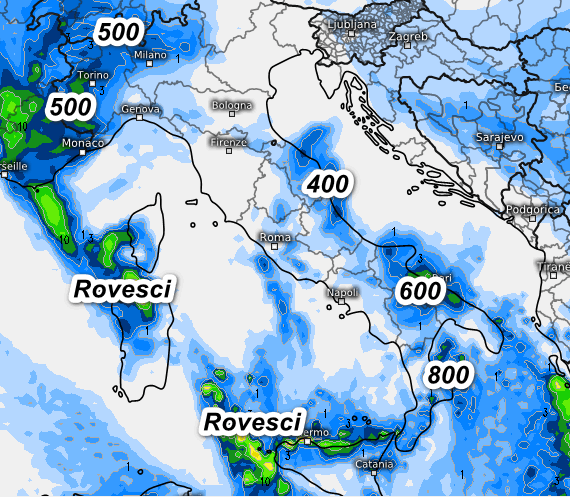 Infine, questa è la sommatoria delle precipitazioni attese in Italia nell’arco della giornata di domani, martedì 9 gennaio: