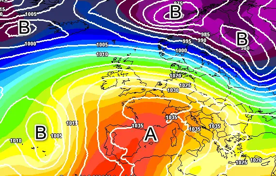 Ecco la figura stabilizzante che sta entrando sul nostro Continente. Si tratta di un’anticiclone che non ha nulla di invernale e determinerà un aumento termico sui colli ed in montagna. A livello del suolo ristagneranno nebbie, umidità, freddo ed inquinamento mentre il comune denominatore sarà la completa assenza di fenomeni da nord a sud.
