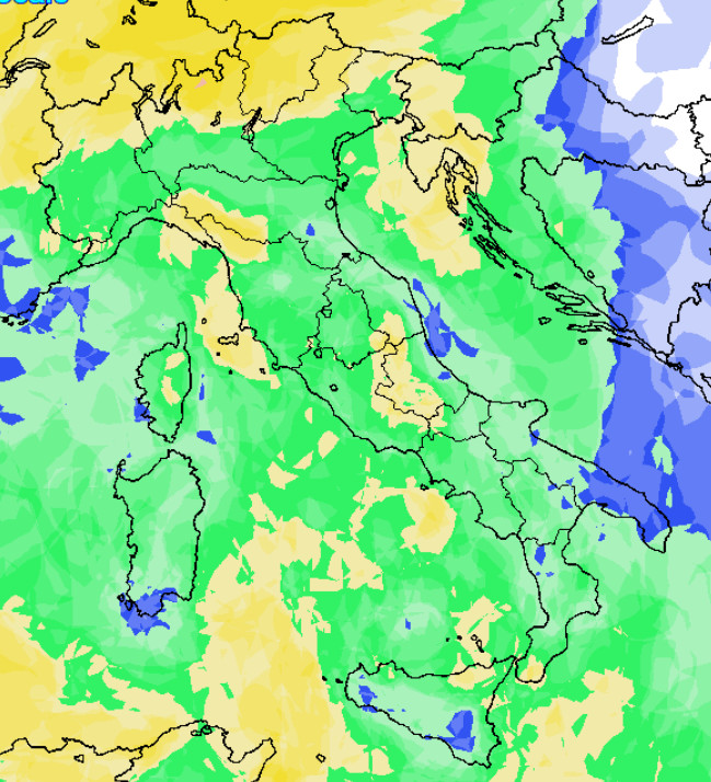 Saranno davvero poche le aree che avranno una probabilità di pioggia bassa. Praticamente quasi tutta la Penisola verrà abbracciata da una probabilità di pioggia media o medio-alta dove vedete il colore giallo.