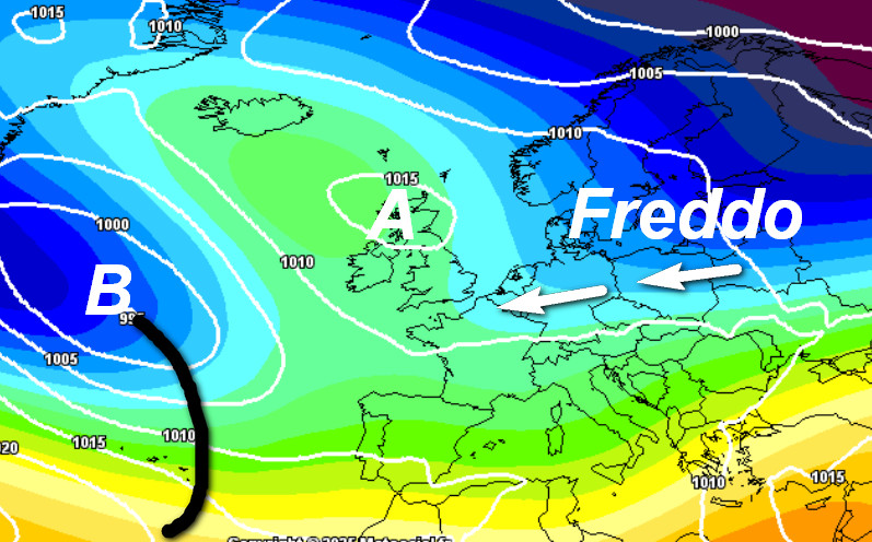 La fase piovosa e mite dovrebbe presentarsi tra il week-end e la prima parte della settimana prossima. A seguire assisteremo ad un raffreddamento di tutto il comparto nord-orientale europeo, con l’alta pressione che schizzerà molto a nord, a notevole distanza da noi.