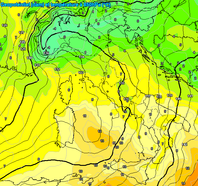 Farà infatti più freddo a 1500m sulla verticale della Valpadana e sulla fascia prealpina piuttosto che sul settore alpino più settentrionale:
