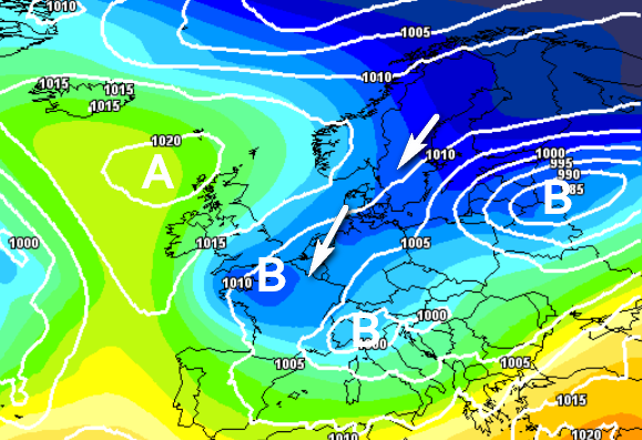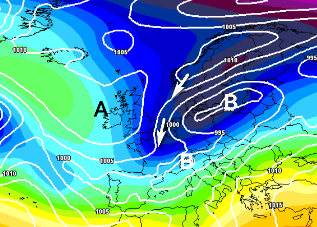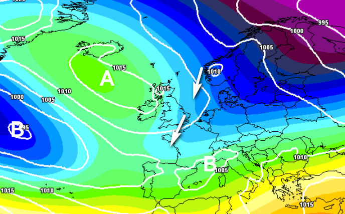 Al momento il modello che prevede l’interazione più spettacolare e produttiva è UKMO, che vi mostriamo qui sotto. E’ una mappa barica prevista per le prime ore di giovedì 13 marzo: