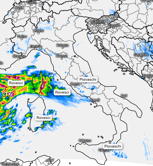 Rovesci anche consistenti sulla Corsica senza l’interessamento delle coste Toscane o Laziali. Qualche acquazzone, occasionalmente temporalesco sulla Sardegna. Piovaschi sempre possibili tra l’est della Sicilia e il sud della Calabria, qualche goccia o brevi piovaschi anche nelle aree interne del centro, ma cose di poco conto, per il resto tempo asciutto, anche se non del tutto sereno. Ulteriore calo termico.