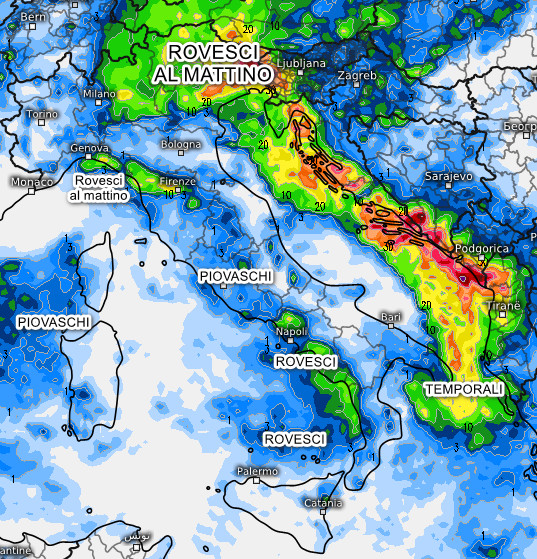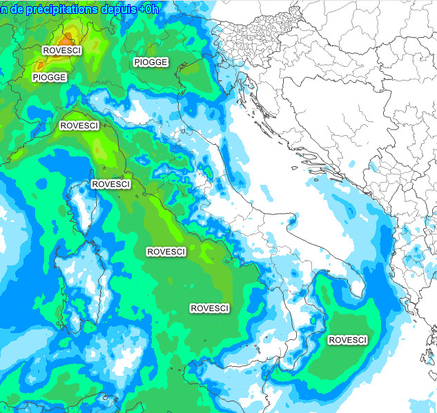 Fortunatamente, le aree alluvionate (Emilia-Romagna e Marche) dovrebbero restare in parziale sottovento e non avere piogge degne di nota. I fenomeni più intensi si concentreranno su Liguria, Piemonte e Lombardia dove avremo anche rovesci e temporali. Rovesci in trasferimento nell’arco della giornata dalla Sardegna a tutto il versante occidentale italiano oltre alle aree interne. Tra pomeriggio e sera arriveranno anche acquazzoni sul Triveneto e sul settore ionico.