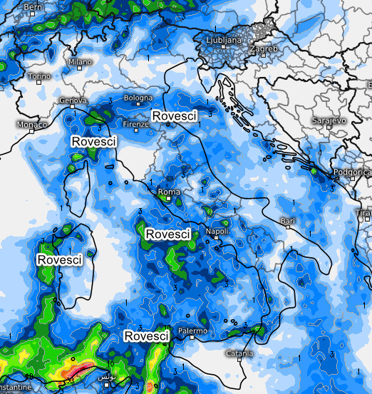 Piovaschi o rovesci su diverse aree del centro e del meridione, Isole comprese, mentre al nord i fenomeni saranno meno probabili. Temperature su valori non freddi di giorno. Torneremo su questa previsione nei nostri prossimi articoli.