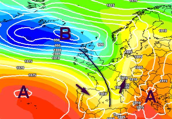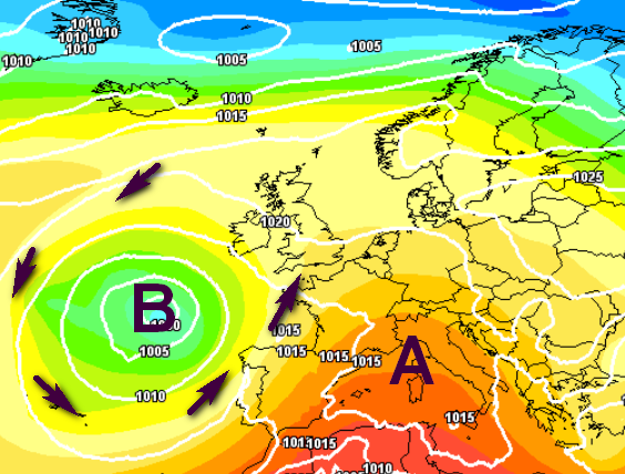 Notate però come già il nord-ovest risenta dell’avvicinamento di una nuova saccatura, che non ha alcuna intenzione di regalare su un piatto d’argento la calda estate all’area mediterranea, ecco infatti l’intervento a gamba tesa che potrebbe stroncare le velleità anticicloniche, riportando piogge e temporali su mezza Italia con annesso importante calo termico: