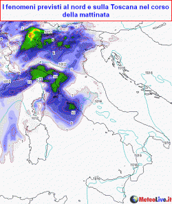 Passaggio di nuclei temporaleschi ad intermittenza sul settentrione, con fenomeni anche forti. Possibili rovesci a tratti anche su Sardegna, Toscana ed alto Lazio. Tempo migliore sul resto del Paese. Martedì rovesci solo tra Toscana e Lazio, mercoledì su gran parte del centro ed estremo nord-est; tra giovedì e venerdì note di instabilità sul medio-basso Tirreno, per il resto miglioramento e splendido fine settimana in arrivo.