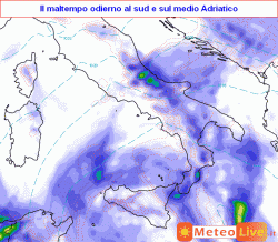 insiste ancora sulle nostre regioni meridionali e sul medio Adriatico, determinando condizioni di marcata instabilità, tempo invece in progressivo miglioramento sul resto d’Italia.