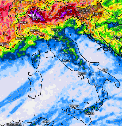 Previsti accumuli sin oltre i 250mm, attenzione soprattutto al nord Lombardia, Milano compresa, ma non solo...