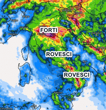 Massima attenzione per l’Emilia Romagna dove prevediamo piogge forti e temporali fino a domani mattina. Rovesci e maltempo anche sul resto del centro-sud ad eccezione della Sardegna e delle aree più estreme dove le piogge saranno più scarse. Scarse le precipitazioni anche al nord-ovest. Ventoso, fresco e mari in condizioni non ottimali su tutta l’Italia.