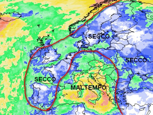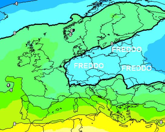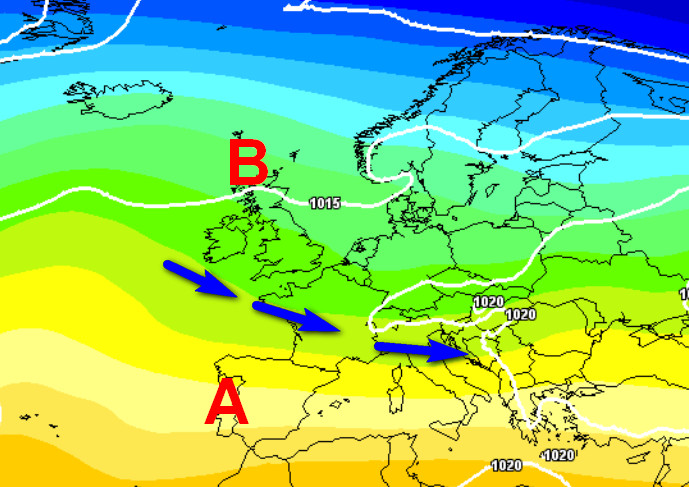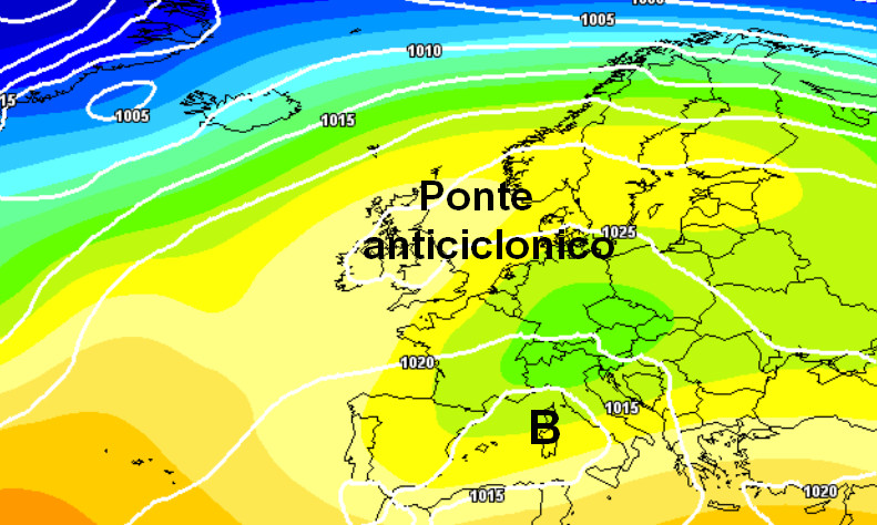 L’alta pressione punterà a nord formando un lungo ponte che si estenderà dal Vicino Atlantico all’Europa orientale, passando per la Scandinavia (ponte di Weikoff). Più a sud sarà presente una circolazione depressionaria con centro proprio sull’Italia, alimentata direttamente da aria fredda di matrice orientale.