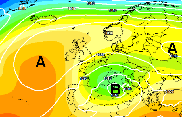 Vediamo il quadro barico intanto con il top di gamma dei modelli totalmente d’accordo sul posizionamento del vortice depressionario responsabile del maltempo, qui c’è ECMWF: