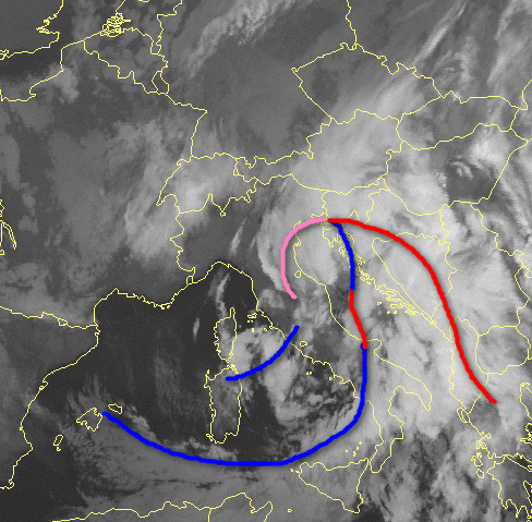La depressione responsabile del maltempo italico è centrata al momento in Abruzzo. Nelle prossime ore tenderà a spostarsi ulteriormente verso sud-est in direzione della Puglia e tutte le nostre regioni verranno interessate da fredde correnti settentrionali che taglieranno l’Italia in due: al nord e su gran parte del Tirreno avremo cielo sereno, mentre altrove campeggerà un tempo molto perturbato con venti forti, acquazzoni e NEVICATE anche a bassa quota.