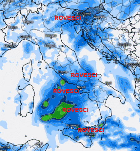 La prima ci riguarda attualmente ed è la perturbazione che al momento si trova adagiata sulle regioni centrali italiane. Sta determinando molti rovesci soprattutto sul Lazio, la Campania e il nord della Sicilia; il corpo nuvoloso tenderà a muoversi verso levante impegnando segnatamente il meridione nel pomeriggio ad iniziare dai versanti tirrenici.