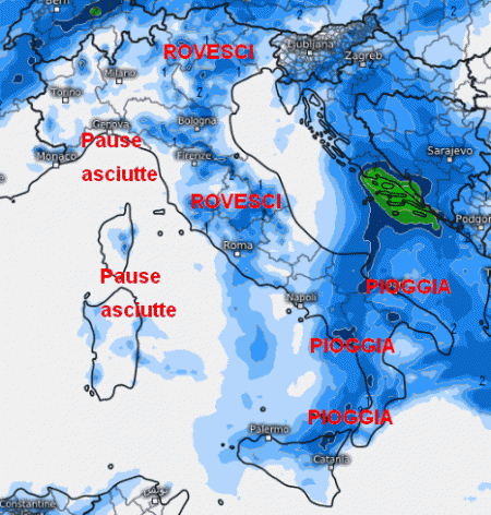 Ecco i rovesci e i temporali che impegneranno soprattutto le regioni meridionali. Rovesci anche nelle aree interne del centro e sul nord-est, pause asciutte e soleggiate invece sul nord-ovest, l’alta Toscana e la Sardegna, in attesa però del peggioramento temporalesco che avverrà nella successiva notte.