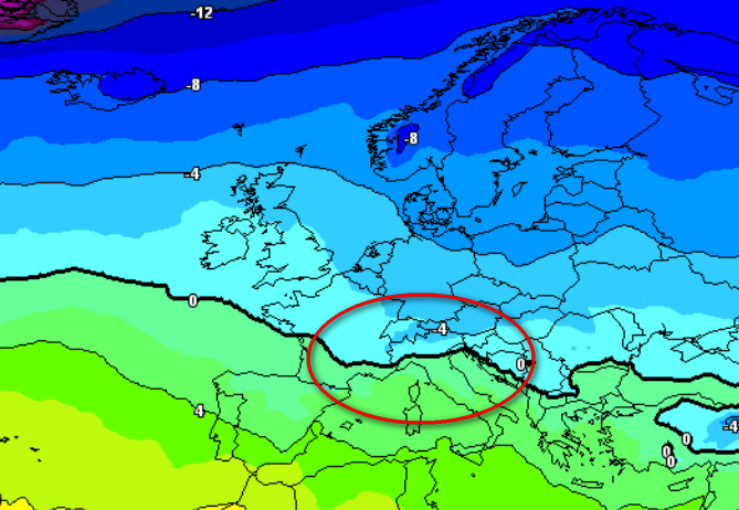 Sarà possibile la NEVE a BASSA QUOTA? Si, ma solo su alcune aree dell’Italia settentrionale. Infatti, se esaminiamo le temperature previste a 1500 metri per venerdi 20 dicembre, notiamo quanto segue: