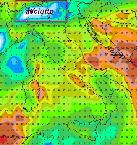 Abbondanti i fenomeni attesi su Abruzzo, basso Lazio, Sardegna orientale, solo moderati altrove. Si tratta comunque di una distribuzione molto irregolare delle piogge, figlia della persistenza di una parziale anomalia barica sul Continente (il solito anticiclone e una corrente a getto ancora un po’ troppo tesa).
