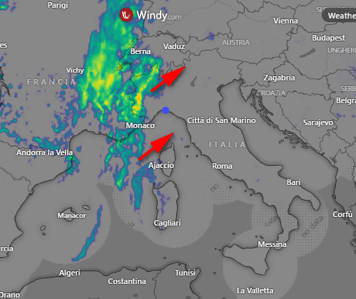 La perturbazione è già a ridosso del settore di nord-ovest (Ecco dove sta piovendo e cosa succederà nelle prossime ore – MeteoLive.it). La riflettività del radar mostra il malloppo precipitativo più importante che è ancora in Francia, ma che si muoverà nelle prossime ore verso levante: