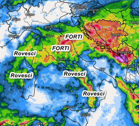 La perturbazione sull’Italia si sta caricando come una molla. Al momento i fenomeni sono ancora scarsi, ma tenderanno ad intensificarsi nell’arco della giornata specie su Emilia Romagna, regioni centrali e Campania.