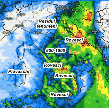 Andiamo con ordine. Questa è la sommatoria delle precipitazioni attese in Italia fino alle ore 7 di domani mattina, mercoledi 6 dicembre: