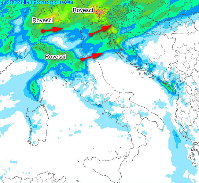 Una perturbazione sta interessando il settentrione con piogge anche intense. Evolverà abbastanza velocemente verso levante nell'arco della giornata.