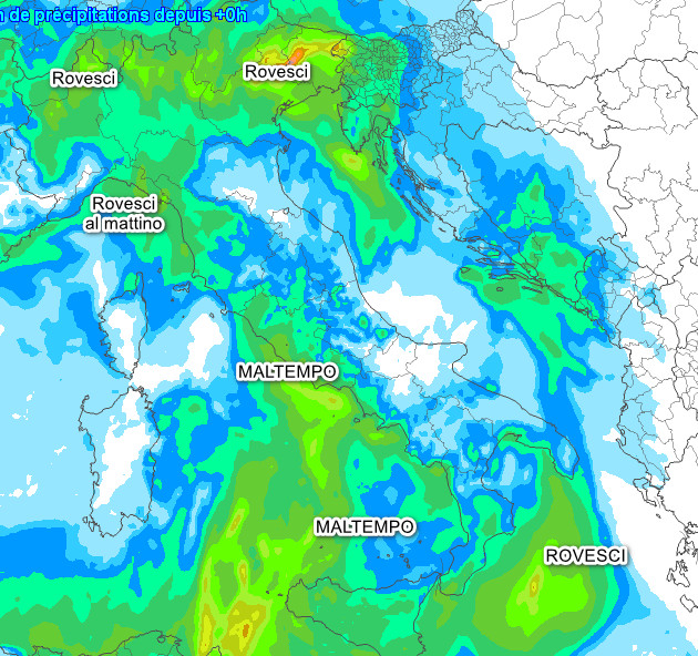 Tranne la Sardegna e forse l’estremo nord-ovest, il maltempo abbraccerà tutte le nostre regioni con piogge anche intense specie al meridione e sul nord-est. Generale calo delle temperature.
