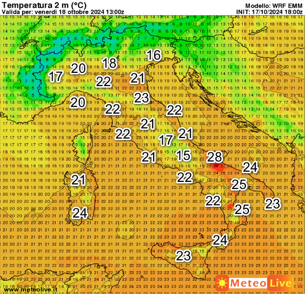 Sul fronte delle temperature, questi sono i valori attesi in Italia alle ore 15 di oggi pomeriggio: