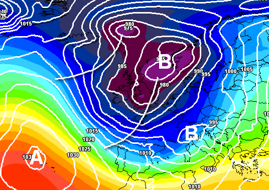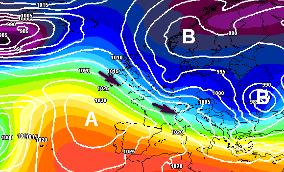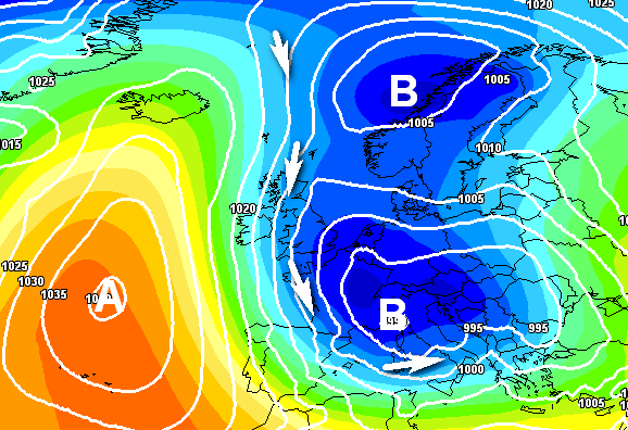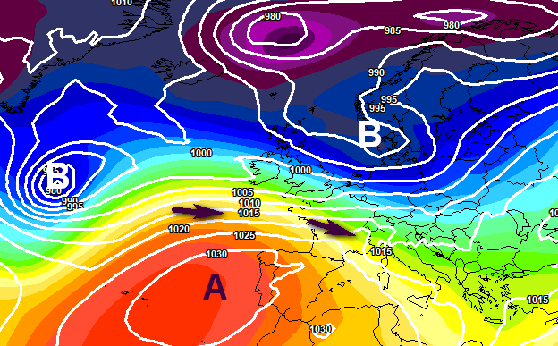 Qui sotto un altro schema barico favorevole all’arrivo di precipitazioni rilevanti: