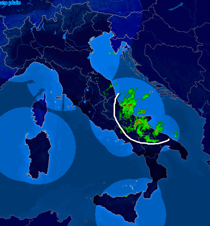 Notiamo l’insistenza dei rovesci tra il Molise, la Puglia e la Lucania. I fenomeni stanno risalendo verso nord ed iniziano ad interessare l’Abruzzo ed in maniera più sporadica ed isolata le Marche. Qualche rovescio è presente ancora tra il nord della Sicilia e il sud della Calabria, ma la situazione su queste due regioni sta migliorando. Sul resto d’Italia prosegue invece la completa assenza di piogge e fenomeni.