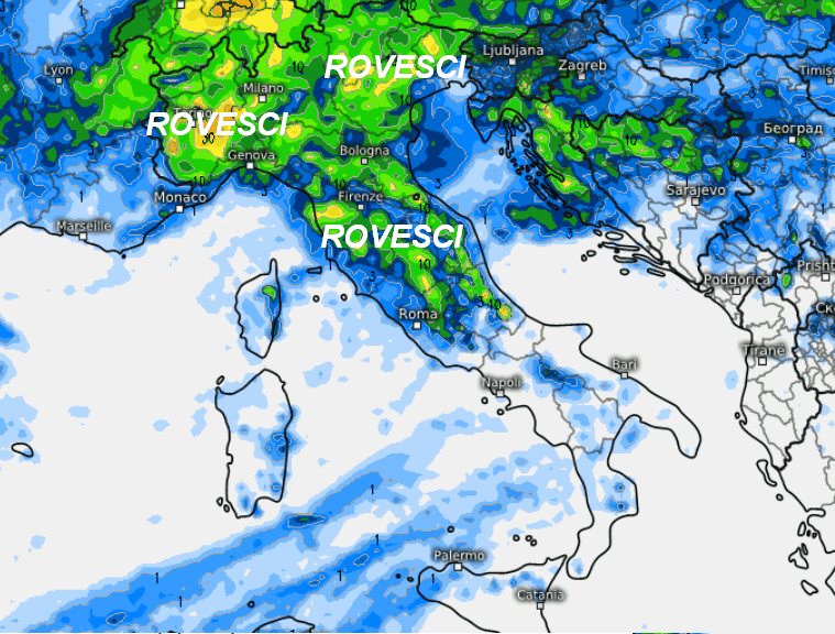 Questa invece è la sommatoria delle precipitazioni attese in Italia nell’arco della giornata di martedi 7 maggio: