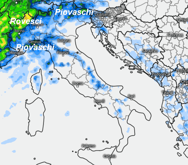 Al centro, al sud e sulle Isole sarà una bella giornata soleggiata e con temperature gradevoli. Qualche addensamento sarà presente nelle aree interne nel pomeriggio, ma con basso rischio di fenomeni. Situazione diversa invece al nord, specie al nord-ovest, dove si avranno molte nubi ed anche dei rovesci tra il pomeriggio e la serata su Alpi, Prealpi ed alcune zone di pianura. Relativamente più stabile la situazione al nord-est a parte piovaschi sulle Alpi tra pomeriggio e sera.