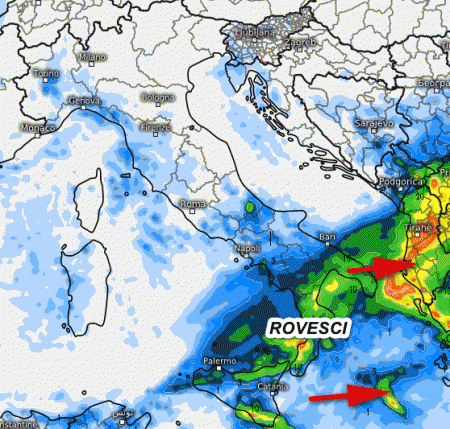 Andiamo però con ordine. La prima mappa mostra la sommatoria delle precipitazioni attese in Italia fino alle 7 di domani mattina, giovedi 9 novembre: