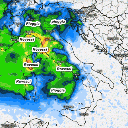 Le piogge si riferiscono alla seconda parte della giornata ed interesseranno gran parte del settentrione, il medio-alto Tirreno e la Sardegna, anche a carattere di rovescio. Qualche nevicata interverrà sulle Alpi sopra i 1200-1300 metri. Temperature in calo al nord, stazionarie altrove.