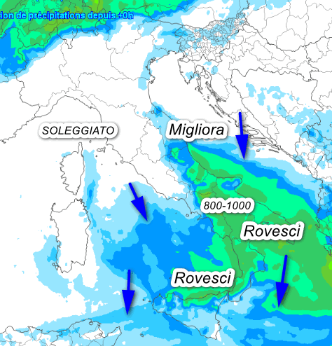 Al nord soleggiato, ma con nubi in aumento sulle Alpi a fine giornata con qualche nevicata sulle creste. Bel tempo anche su Toscana, Umbria, Lazio e Sardegna. Tempo molto instabile sulle altre regioni con rovesci, temporali e nevicate in Appennino oltre gli 800-1000 metri. In giornata tenderà a schiarire sull’Abruzzo e le precipitazioni si concentreranno al sud. Venti forti da nord al centro e al sud, in rotazione nel pomeriggio a sud-ovest sulla Liguria. Mari quasi tutti in condizioni non ottimali a parte i bacini settentrionali.