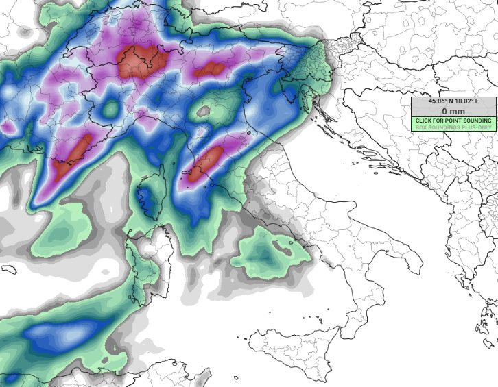 In serata: estensione dei fenomeni verso il Triveneto, il resto della Toscana, Umbria, alto Lazio e Sardegna.