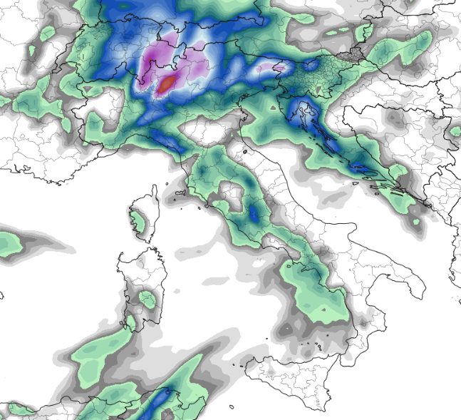 | Martedì 9 | Nord-Ovest, Liguria, alta Toscana | Temporali intensi, piogge diffuse | Libeccio | In calo al Nord |