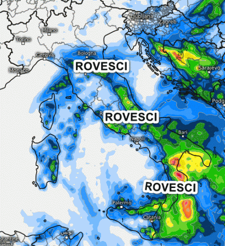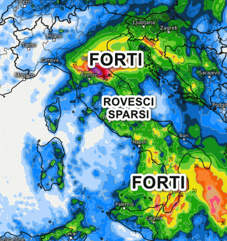 Le piogge più forti riguarderanno l’Emilia Romagna e il meridione, qui anche a carattere di temporale. Rovesci sparsi al centro, meno probabili su Toscana e Sardegna, tempo invece in miglioramento al nord-ovest. Attenzione ai venti forti tra nord e nord-est.