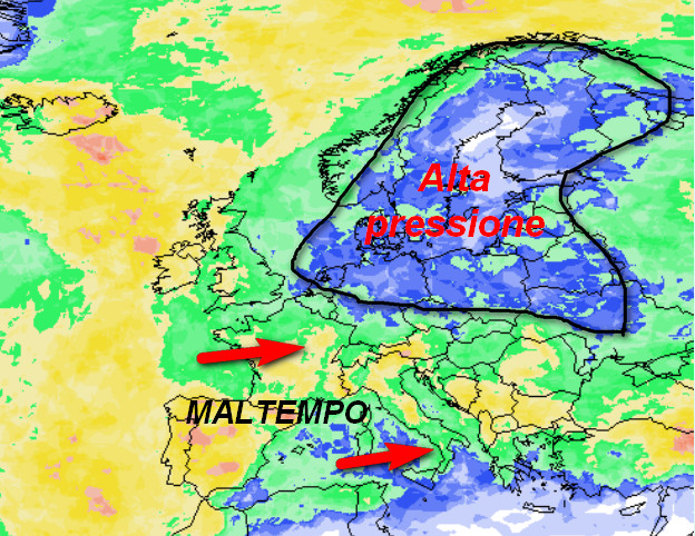 Successivamente, la grande zona di alta pressione presente sul settore centro-settentrionale del Continente tenderà lentamente ad indebolirsi, consentendo una progressiva ripresa del flusso atlantico ad iniziare dal Bacino del Mediterraneo.