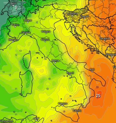 Naturalmente questo introdurrebbe aria molto fresca su tutta la Penisola a partire dal nord-ovest con ridimensionamento delle temperature dopo tante settimane sopra media con rischio però di precipitazioni estreme.