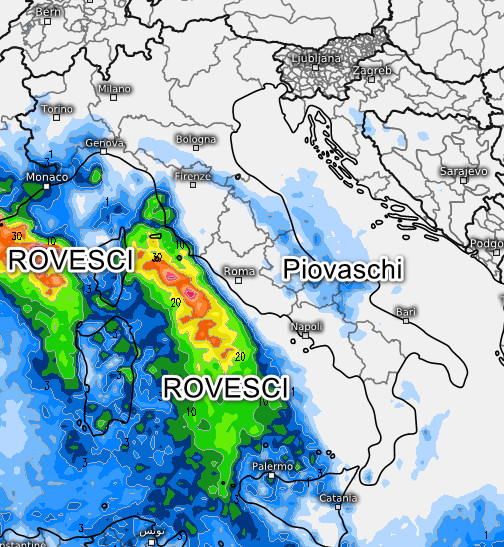 Infine, queste sono le piogge previste in Italia nell’arco della giornata di domani, sabato 9 novembre: