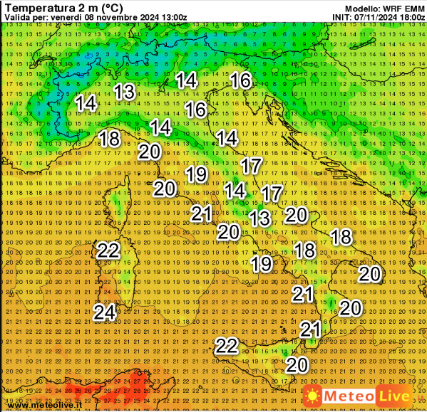 Sul fronte termico, queste sono le temperature attese questo pomeriggio alle ore 14: