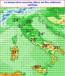 CALDO: nel fine settimana caldo estivo su Sardegna, Sicilia, Puglia, Molise, Basilicata, Lazio, Toscana, molto mite altrove. Punte di 31°C attese in Sardegna.