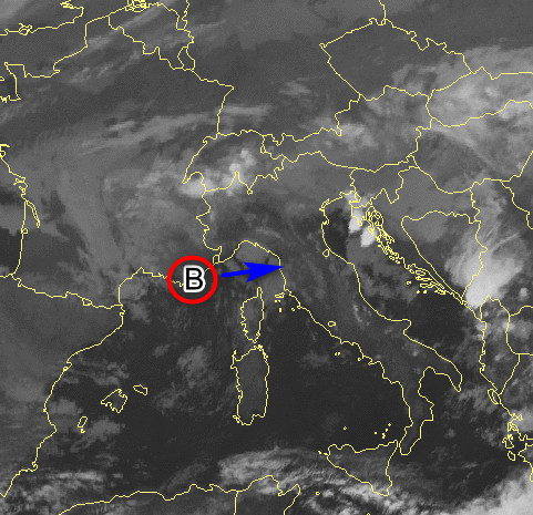 Notiamo come sulle nostre regioni non vi siano perturbazioni organizzate, bensì una circolazione depressionaria che bascula con il suo perno tra il Mar Ligure, la Costa Azzurra ed il Piemonte. Quest’oggi assisteremo al transito di un nuovo nucleo freddo in quota sul Mar Ligure (circa -24° a 5000 metri) che incentiverà l’attività temporalesca su gran parte del settentrione e del centro nell’arco della giornata.