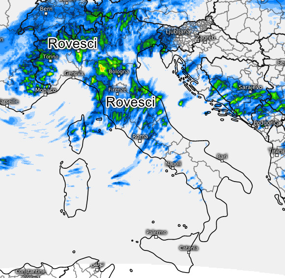 Rovesci sparsi al nord, meno probabili (ma non esclusi) tra Liguria e basse pianure. Rovesci e temporali anche sulle regioni centrali, specie nelle aree interne dove i fenomeni saranno più intensi. Tempo invece più stabile sulle Isole e al sud a parte qualche piovasco sulla Campania.