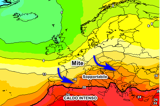 E’ evidente l’azione di limaggio delle correnti occidentali ai danni dell’alta pressione africana che tenderà a ritirarsi verso sud. Il caldo diverrà quindi maggiormente sopportabile al nord e al centro, mentre resterà purtroppo intenso sulle Isole e sulle estreme regioni meridionali.
