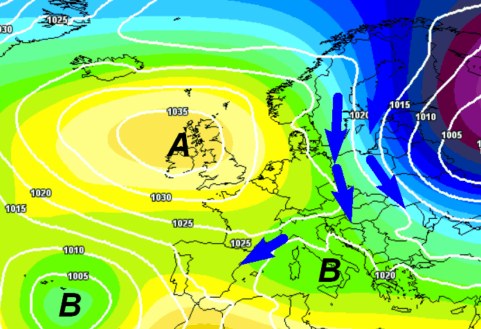 Il cambiamento di configurazione che ci farà assaporare un clima più invernale sull’Italia è ormai alle porte; un cambiamento che vedrà la costruzione di un vasto anticiclone tra la Scandinavia e le Isole Britanniche, proprio laddove è presente una vasta depressione che al momento spara aria mite da ovest sull’Europa centrale e l’Italia. La nostra Penisola vedrà quindi la fine delle correnti miti occidentali, che verranno sostituite da aria decisamente più fredda di matrice orientale soprattutto all’inizio della settimana prossima.