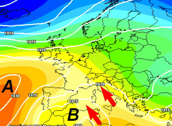 L’alta pressione si allungherà temporaneamente sull’Europa centrale e formerà una specie di ponte, ma le correnti fredde nord atlantiche tenderanno a smantellarlo quasi subito in favore di una situazione più perturbata e fredda anche sulla nostra Penisola.