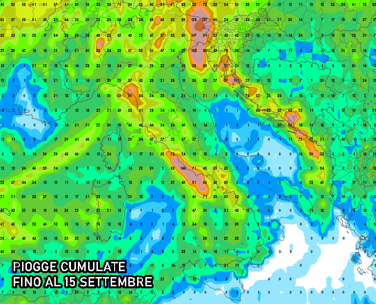 La giornata peggiore sarà quella di mercoledì, quando con l’ingresso del fronte freddo si svilupperanno numerosissimi temporali o addirittura un unico grande fronte temporalesco pronto ad attraversare tutto il centro e il nord Italia. Le precipitazioni saranno molto più forti e persistenti su Liguria centro-orientale, Toscana, Lazio, Campania, Umbria, Appennino emiliano e gran parte del nord, specie sui settori alpini e prealpini. Nella sola giornata di mercoledì potrebbero precipitare oltre 90-100 mm di pioggia in corrispondenza dei forti temporali. Nel frattempo farà ancora parecchio caldo al sud, almeno fino a mercoledì sera, a causa dei venti di scirocco che continueranno a traghettare aria calda dal Nordafrica.