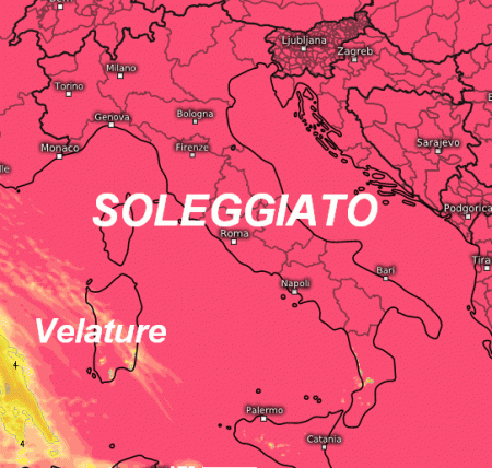 Velature sparse sulla Sardegna, soleggiato altrove con definitiva attenuazione delle correnti orientali e temperature massime in ulteriore aumento.